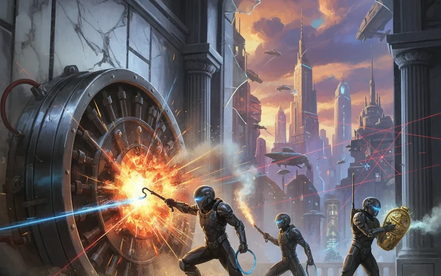 La mécanique de survie imaginée dans le roman relève du pur génie sadique. La banque n’est plus un simple décor inerte, c’est un organisme vivant qui digère ses occupants un à un. Le sol en marbre s’ouvre pour laisser place à des incinérateurs rugissants, ravalant les cadavres dans des flammes bleutées. C’est une véritable leçon de tension qui comblera tous ceux qui souhaitent découvrir la catégorie HEIST avec l’adrénaline d’un « survival-thriller » dystopique rappelant les ambiances mortelles de Battle Royale ou Saw.